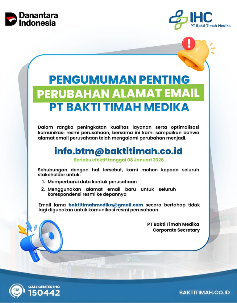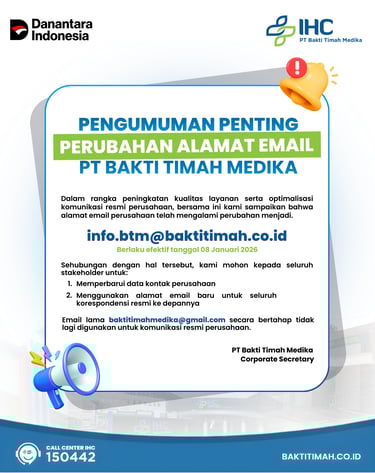 Email lama baktitimahmedika@gmail.com secara bertahap tidak lagi digunakan untuk komunikasi resmi perusahaan.